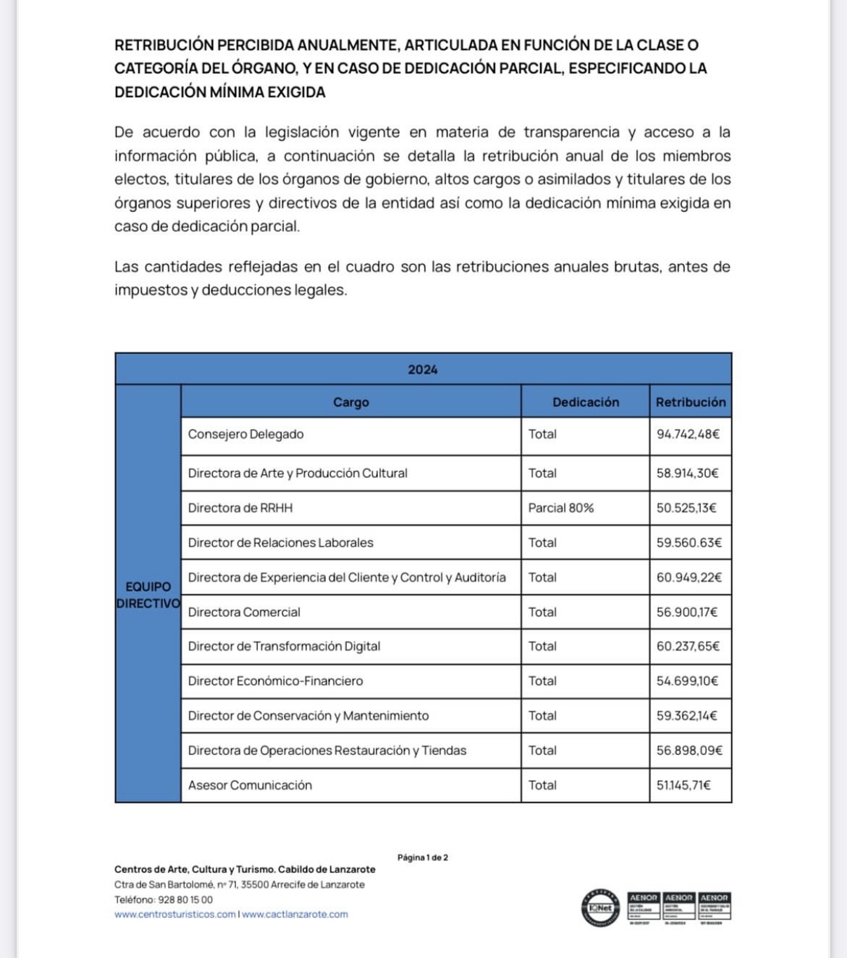 Los socialistas recuerdan que las propias tablas retributivas de los Centros Turísticos, disponibles en la web de la Entidad, recogen con claridad que la retribución total anual del consejero delegado fue en 2023 de 69.785,37 euros, mientras que en 2024 asciende a 94.742,48 €, es decir, casi 25.000 euros más y un incremento cercano al 36 % en un solo año. “En este caso, los datos matan el relato de Ángel Vázquez”, subrayan.