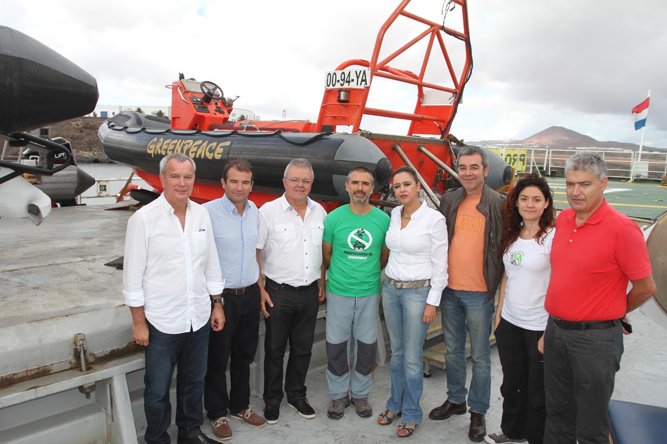 La secretaria insular del PSOE de Lanzarote María Dolores Corujo, el Senador Domingo Fuentes y el Diputado Sebastián Franquis, han visitado a los activistas de Greenpeace a bordo del Artic Sunrise.