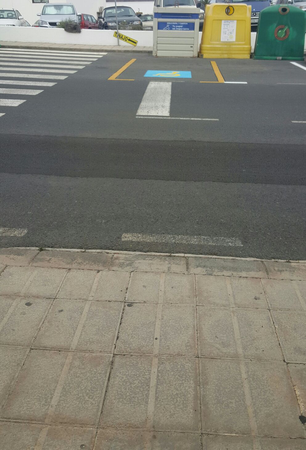 La sorpresa ha saltado al ver que estos días precisamente, operarios municipales han procedido a señalizar varias plazas reservadas, pero las prisas han llevado a situar una de ellas en un lugar inadecuado, junto a un grupo de contenedores de reciclaje.