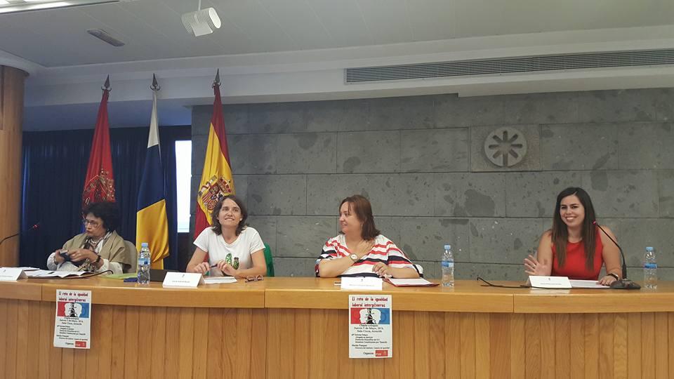Intervinieron la directora del Instituto Canario de Igualdad, Marian Franquet, y la senadora constituyente por Tenerife y diputada entre las Legislaturas I y V, María Dolores Pelayo, “dos mujeres combativas, trabajadoras, sensibles y comprometidas en la defensa del colectivo femenino en todos los ámbitos de la sociedad”, en palabras de la presentadora del acto, Alicia Pérez, de Juventudes Socialistas.